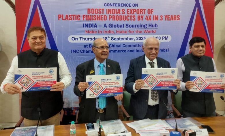 मुंबई -(NHI) जागतिक प्लास्टिक व्यापारात भारत निर्णायक उडी घेण्यासाठी सज्ज आहे. “मेक इन इंडिया, मेक फॉर द वर्ल्ड” या ध्येयदृष्टीखाली, ऑल इंडिया प्लास्टिक्स मॅन्युफॅक्चरर्स असोसिएशन (AIPMA) ने पुढील तीन वर्षांत भारतातील प्लास्टिक फिनिश्ड प्रॉडक्ट्सच्या निर्यातीला चौपट वाढवण्याची महत्वाकांक्षी रणनीती जाहीर केली आहे. तसेच २४ सप्टेंबर २०२५ रोजी मुंबईत होणाऱ्या आंतरराष्ट्रीय परिषदेची घोषणाही करण्यात आली.